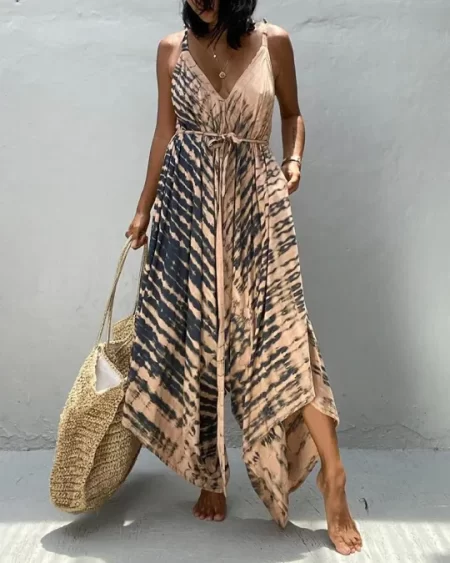Be the first to review “Tie-Dye Print Wide-Leg Lace-Up Loose Jumpsuit” Cancel reply